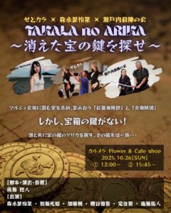 2025年10月26日(日)森永星怜菜が「せとカラ×森永星伶菜×瀬戸内殺陣の会 TAKARAnoARIKA〜消えた宝の鍵を探せ〜」に出演します。